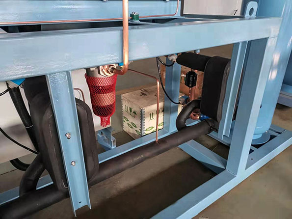 2、可靠性高,運行安全,由于采用多臺壓縮機頭并聯(lián),即使個別機頭出現(xiàn)故障,另外幾臺機頭還可以正常工作,不需要備用機;機頭采用Bitzer、RefComp品牌半封閉制冷壓縮機,中央控制器和自控閥件、儀表全部采用進(jìn)口產(chǎn)品,運行可靠,免維護;系統(tǒng)管道采用氣焊和氫電聯(lián)焊,保證系統(tǒng)干凈無雜質(zhì)、無泄漏。
